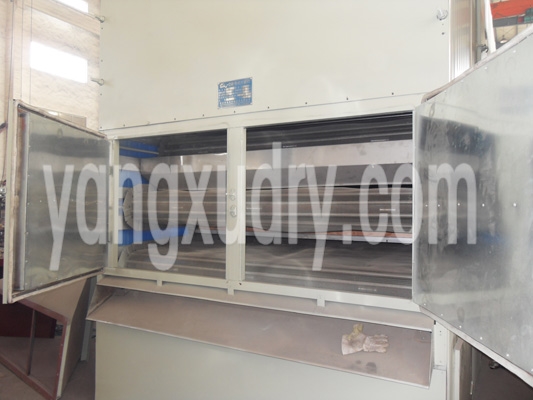 总之,该机工艺流程合理,结构设计新颖,具有独创性;分层进风、分段干燥,符合工艺要求,产品质量好;由于采用穿流热空气加热,增加保温层和余热循环利用等措施,节能效果显著;具有较高的经济效益和社会效益。